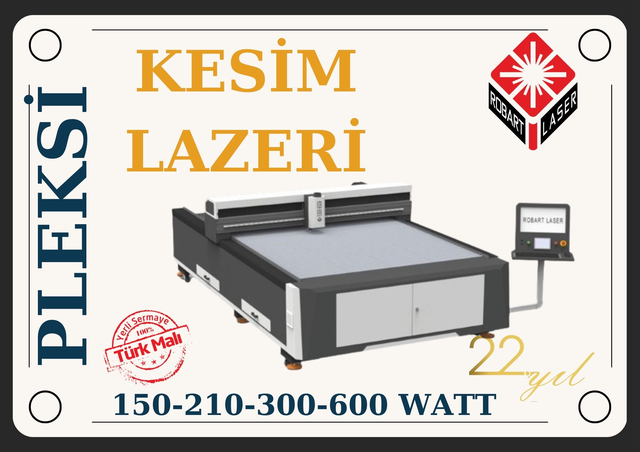 Fiber lazer ve CO2 lazer teknolojilerindeki uzmanlığı ve deneyimi sayesinde endüstriyel alanlarda kullanılan lazer makineleri üreten Robart Lazer, geniş ürün yelpazesiyle müşterilerinin ihtiyaçlarına uygun çözümler sunmaktadır.