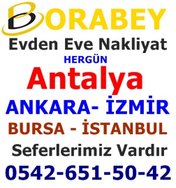 Antalya Borabey Nakliyat ve Taşımacılık Her Türlü Nakliye ve Taşımacılık Konusunda Antalyada 2007den itibaren Faliyetlerini Sürdüren Nakliyat Şirketidir. Bunun yanı Sıra Kendi öz İradesini Kaybetmemiş Müşteri Potansiyelini %100 Konumlarına Getiren Firmamız Her Türlü Ofis Taşıma, Büro Taşıma, Şehiriçi Nakliyat, Şehirlerarası Nakliyat, Taşımacılık ile Sizlere daha iyi imkan sağlamanın Peşindedir. türkiyenin En Büyük Nakliyat Şirketi olarak Bilinen Borabey Nakliyat yanında Çalıştırdığı Sigortalı Profosyonel Elemanları ile Birlikte Tüm Yaptığı Nakliye ve Taşıma Konusunda Müşteri Teşekkürü alan Markasını Konuşturan Firmaların Başında Gelmektedir.
