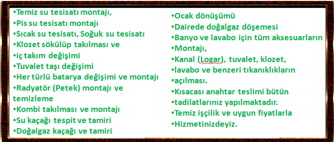dekarasyon işleri doğalgaz tesisatı Güneş enerjisi kalorifer tesisatı Kombi tesisatı Kombi bakımı logar tıkanıgı Su kaçağı su kaçagı bulma tadilat tamir tıkanık açmaHarita
