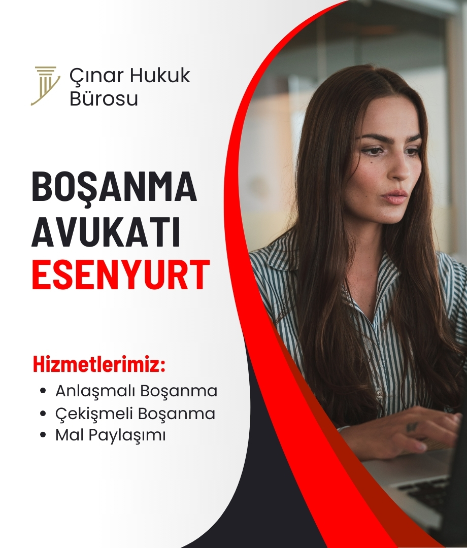 Esenyurt Avukat ve Esenyurt Boşanma Avukatı olarak Çınar Hukuk Bürosu, Esenyurt/İstanbul bölgesinde güvenilir hukuki çözümler sunan bir avukatlık bürosudur. Deneyimli avukatları bulunan Çınar Hukuk Bürosu, aile hukuku (anlaşmalı boşanma davası avukatı) (çekişmeli boşanma davası avukatı), iş hukuku gibi alanlarda uzmanlaşmıştır. Esenyurt'a özel hizmet anlayışıyla, müvekkillerine yerinde ve etkili hukuki destek sağlar. Hızlı çözümler, güvenilirlik ve gizlilik prensipleriyle hareket eden Çınar Hukuk Bürosu boşanma avukat ları, müvekkillerinin ihtiyaçlarına odaklanarak adaletin peşinden koşar.