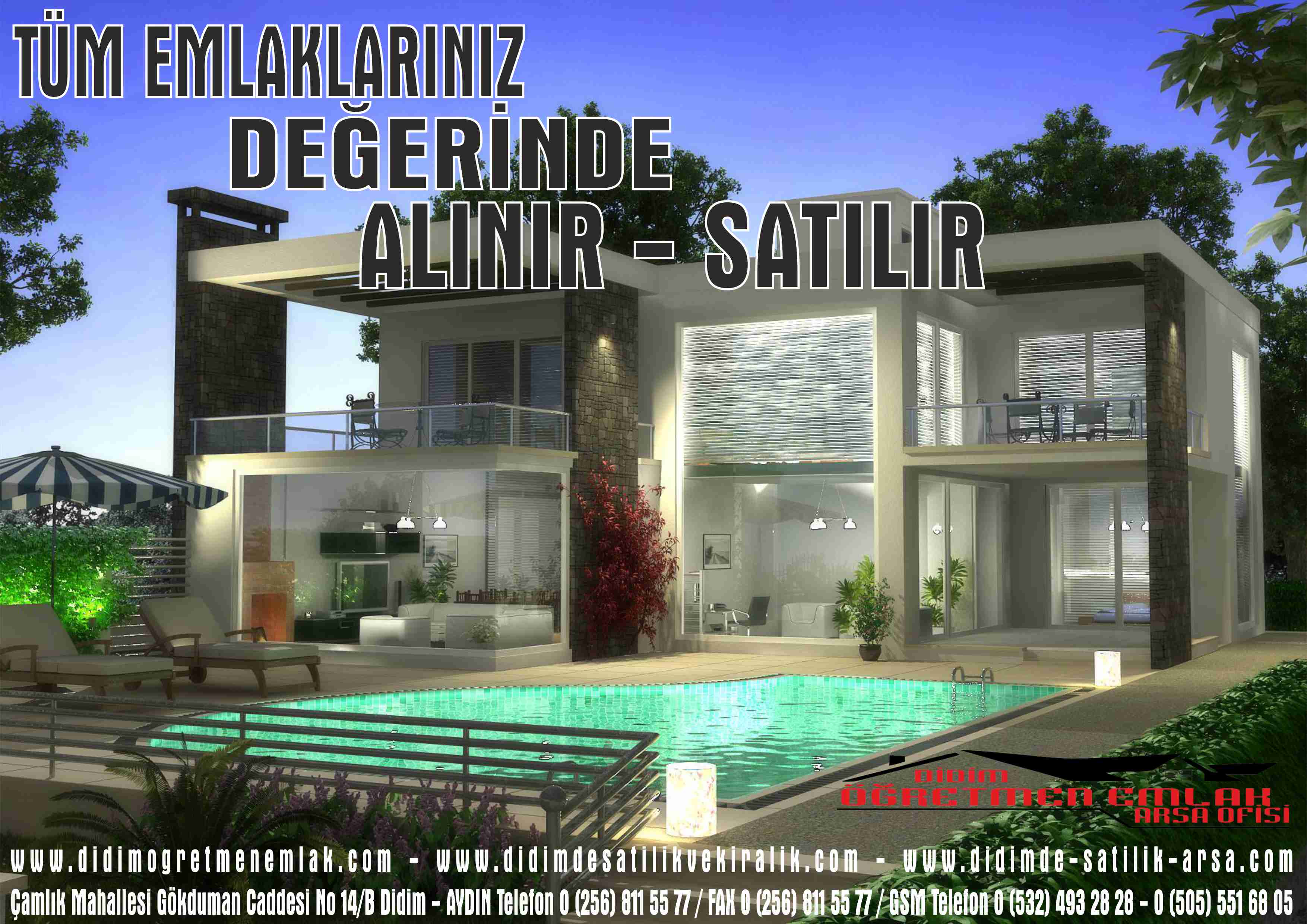 Didim ve çevresinde vermiş olduğumuz gayrimenkul danışmanlığı hizmetlerine her an her yerden ulaşabilmenizi sağlayacak olan sitemiz sayesinde hem bireysel hem de kurumsal ihtiyaçlarınızı daha kısa süre içinde karşılayabilmeniz mümkün olacaktır. Sitemiz üzerinden kullanıcılarımızın daha yüksek kaliteli hizmetlere sahip olması için platformumuzu her zaman yenilemeyi ve geliştirmeyi kendimize görev edindik.
