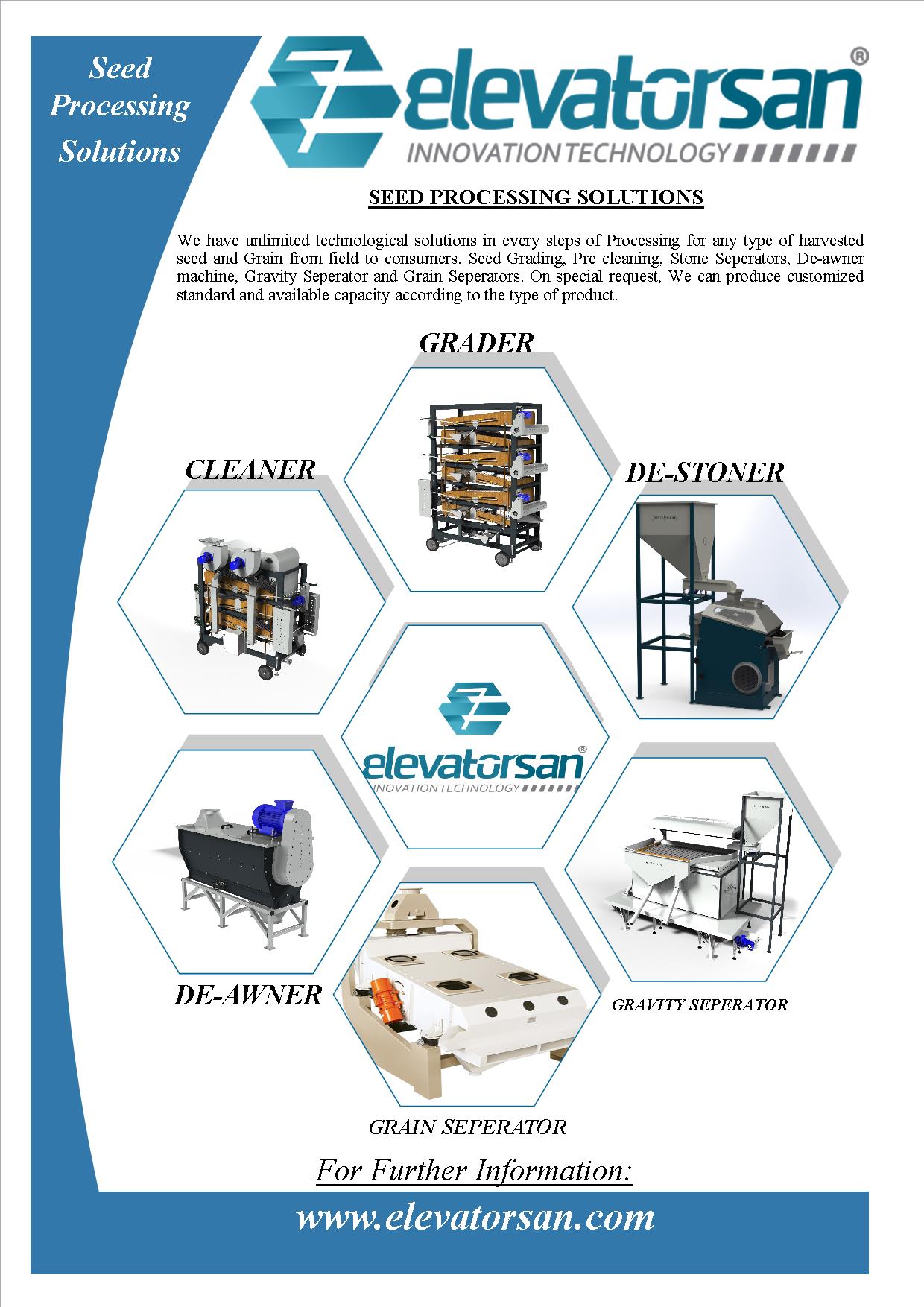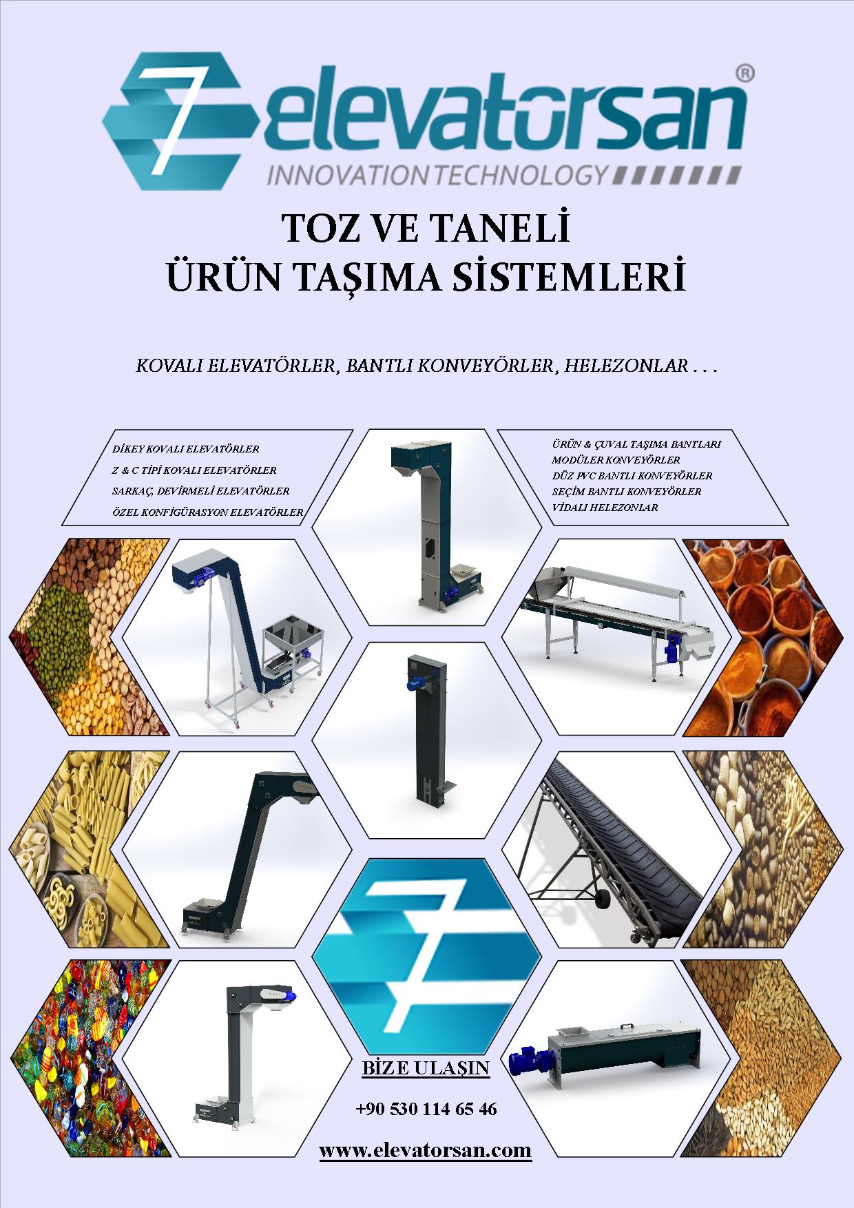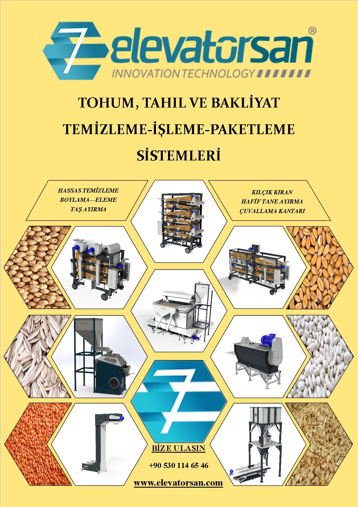 Elevatorsan®, Tahıl işleme ve iyileştirme ekipmanları ve hemen hemen her çeşit gıda ve endüstriyel taşıma ve depolama sistemleri üretiminde, dünya çapında tecrübeli bir firmadır.