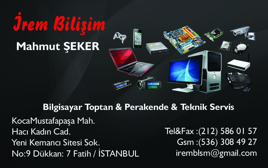 - Kocamustafapaşa mah. hacı kadın cad. yeni kemancı sitesi sok.no 9 dükkan 7 İrem Bilişim