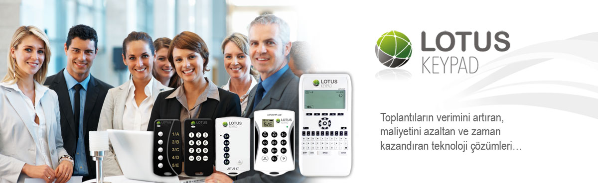 Lotus Keypad; toplantılarınıza kattığı etkinlik ve verimlilik ile interaktif bir ortam oluşturan, sunumlarınıza hızlı geribildirim almanızı sağlayan elektronik oylama-yanıtlama cihazı (keypad) satışını gerçekleştirmektedir. Keypad (elektronik oylama