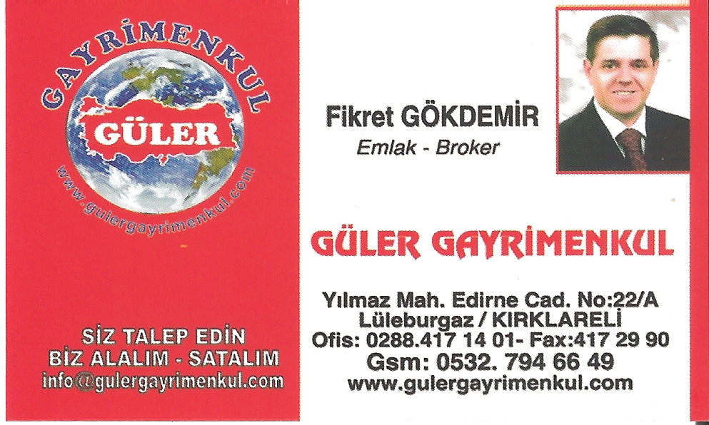 Sizlerde Lüleburgaz GÜLER EMLAK MÜŞAVİRLİĞİ ile çalışmanın güven ve rahatlığını yaşayın.