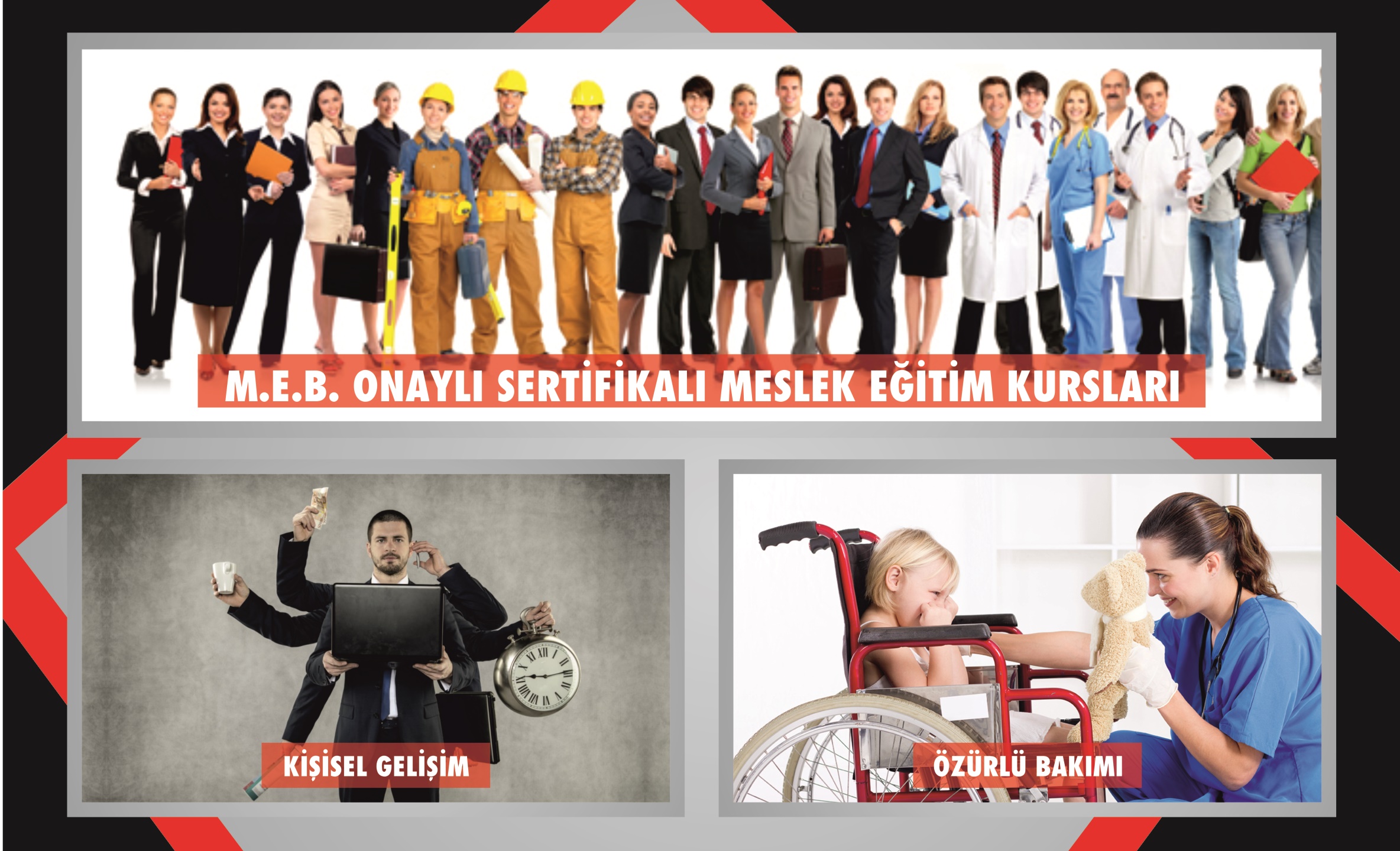 Meslek Eğitim Kurslarımızla, Kişileri meslek sahibi yaparak, kazandırdığı Mesleki Sertifika ile rahatlıkla iş ortamına atılmalarını sağlamak, meslek sahibi olup başka alanlarda da Milli Eğitim Bakanlığı onaylı Mesleki Sertifika ile kariyerlerini yükselterek, gerek manevi ve gerekse ekonomik alanda rahat çalışma koşullarına ulaşmalarına destek olmaktır.