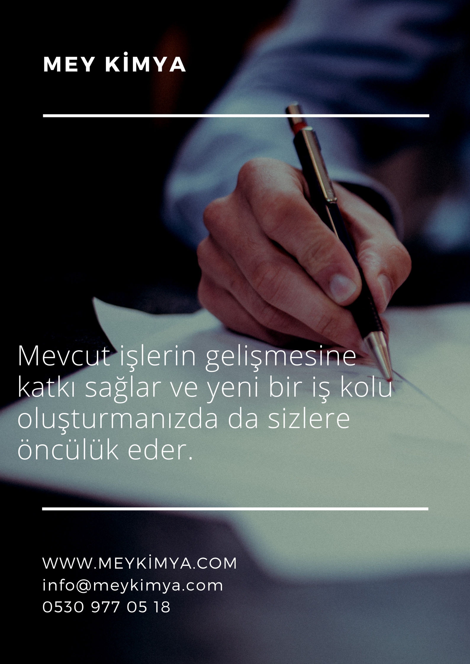 Başta yapı, boya ve plastik olmak üzere birçok farklı sektöre hizmet veren MEY KİMYA, gelişmiş arge imkanlarını satış ve pazarlama alanındaki uzmanlığıyla birleştirmiştir.