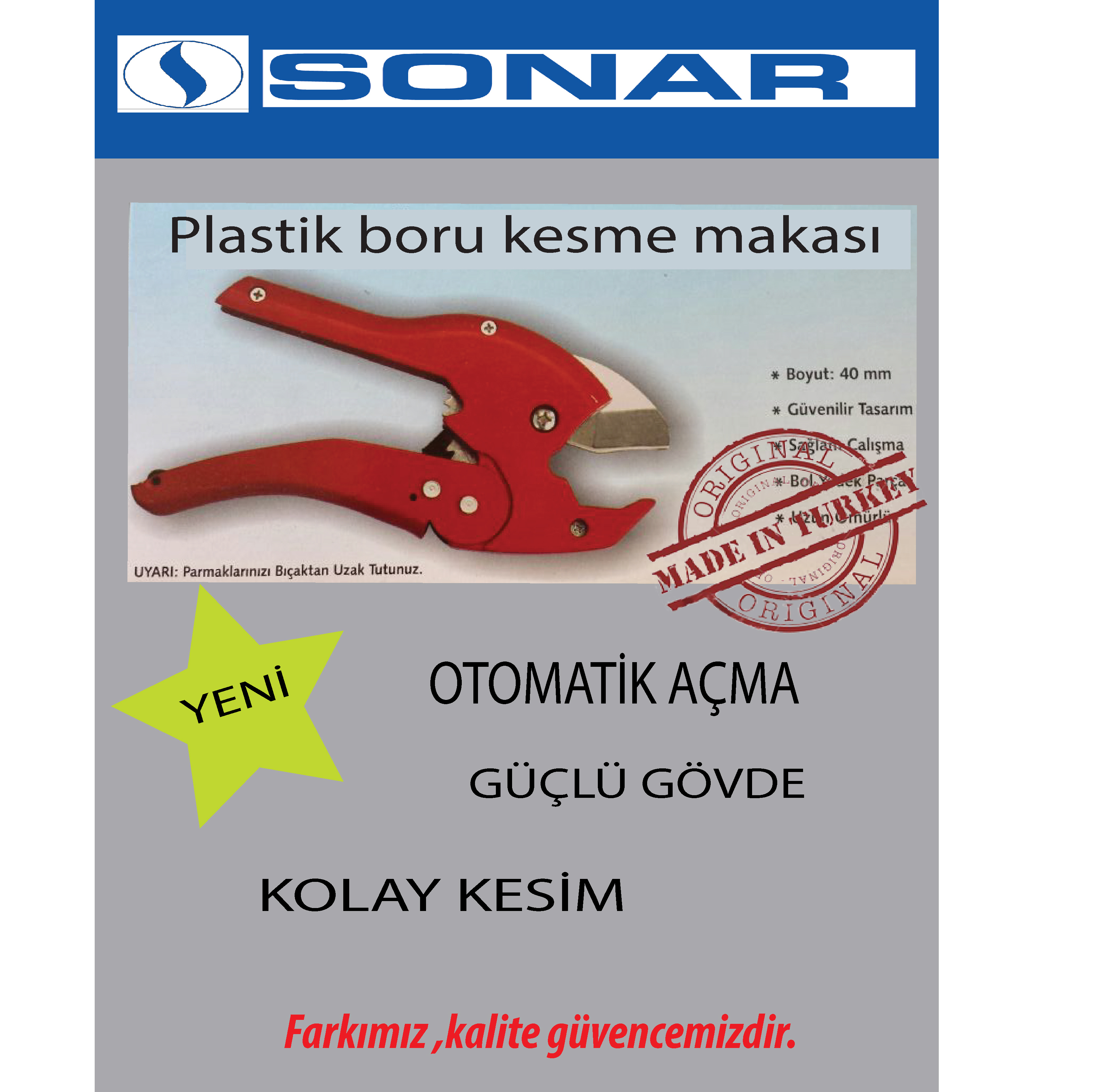 Firmamız 1979 dan beri SONAR Havya ve 1992 den beri de plastik boru kaynak makinası ve ekipmanları üretmektedir.Türkiyenin önde gelen plastik üreticilerininde makina tedarikçisi olarak hizmetini sürdürmektedir.Tamamen yerli üretim ve kaliteden taviz vermeyen firmamız DENİZLİ de bulunmaktadır.